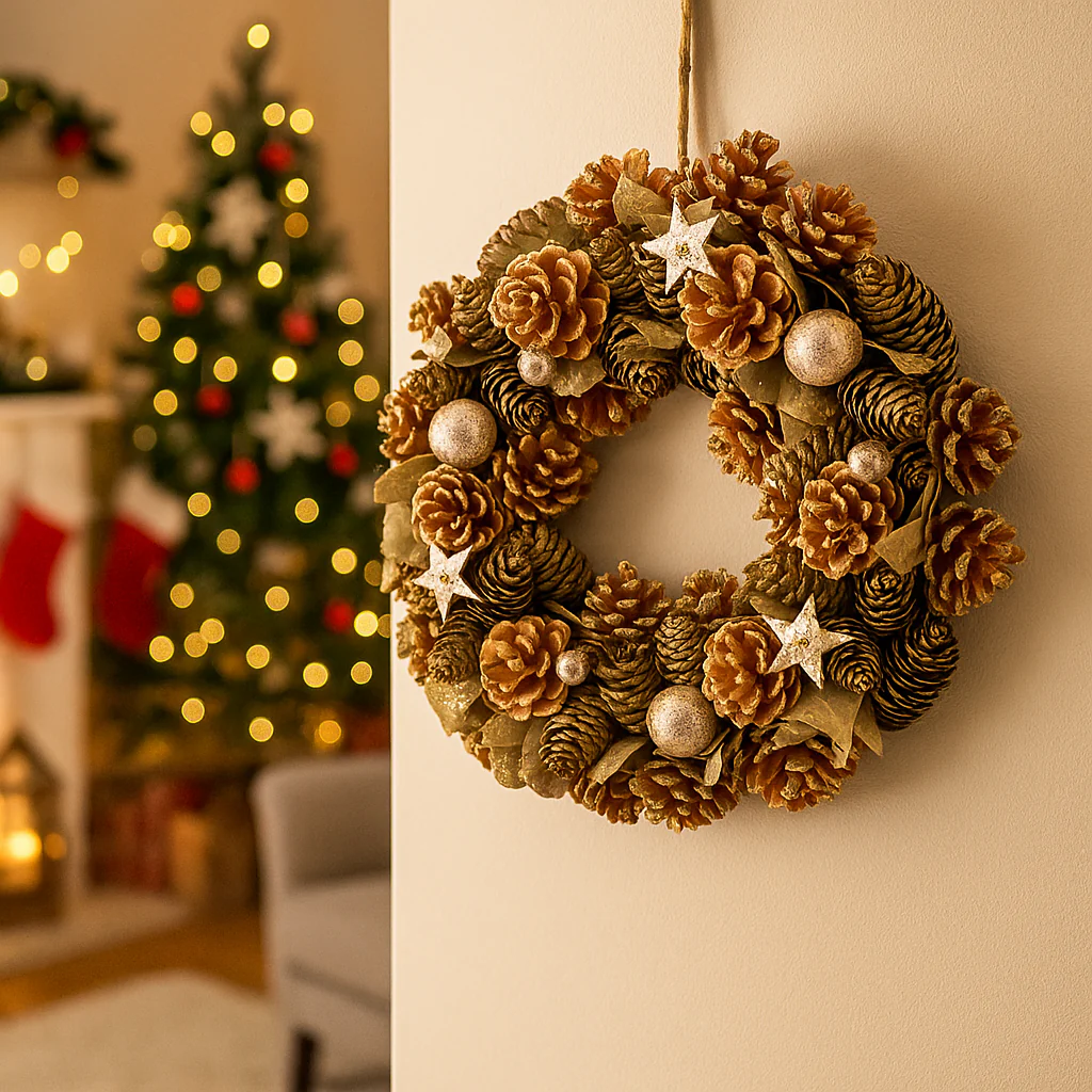 Ghirlande natalizie già pronte per addobbare porte, pareti e ambienti con colori, luci e dettagli festivi